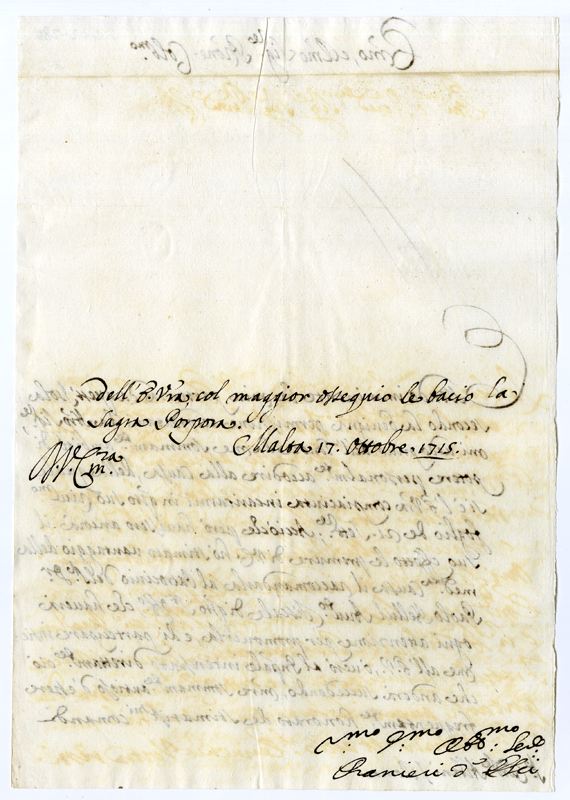 Lettera di Ranieri d'Esei al cardinale Annibale Albani (1715 ottobre 17)