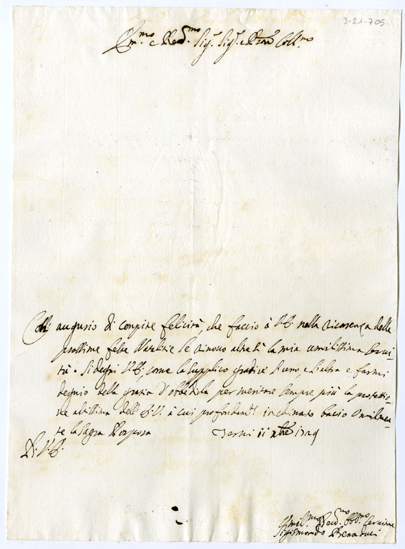 Lettera di Sigismondo Benaduci al cardinale Annibale Albani (1729 dicembre 11)