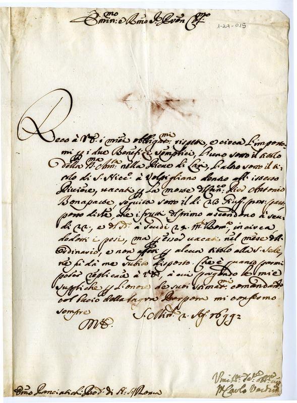 Su alcuni benefici vacanti per morte del canonico Pier Antonio Bonaparte