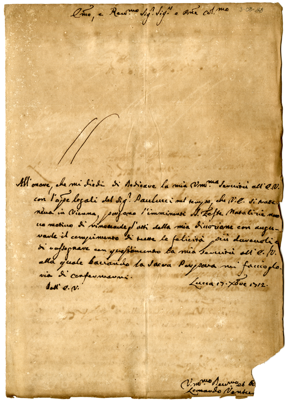 Lettera di Leonardo Venturini al cardinale Annibale Albani (1712 dicembre 17)