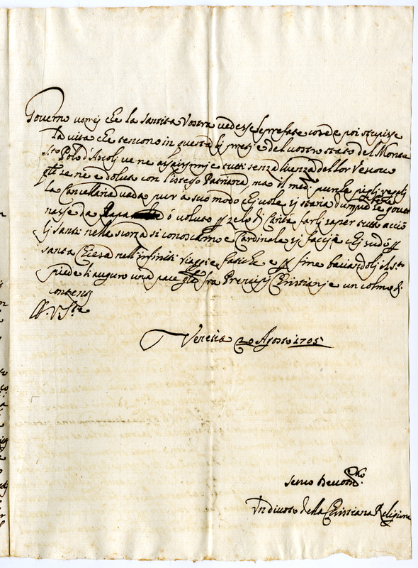 Lettera di "Un divoto della Cristiana Religione" a papa Clemente XI (1705 agosto 20)