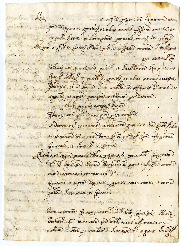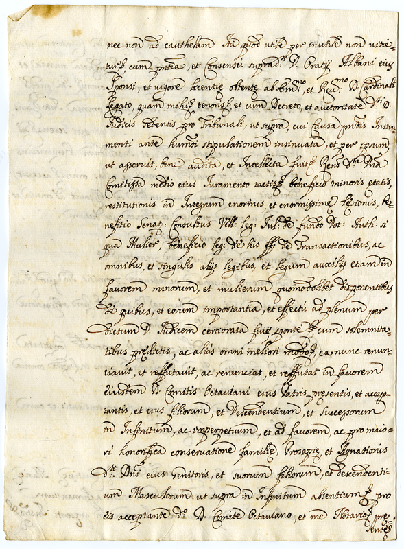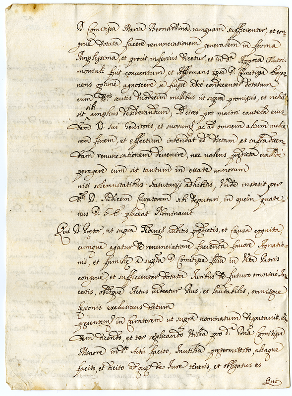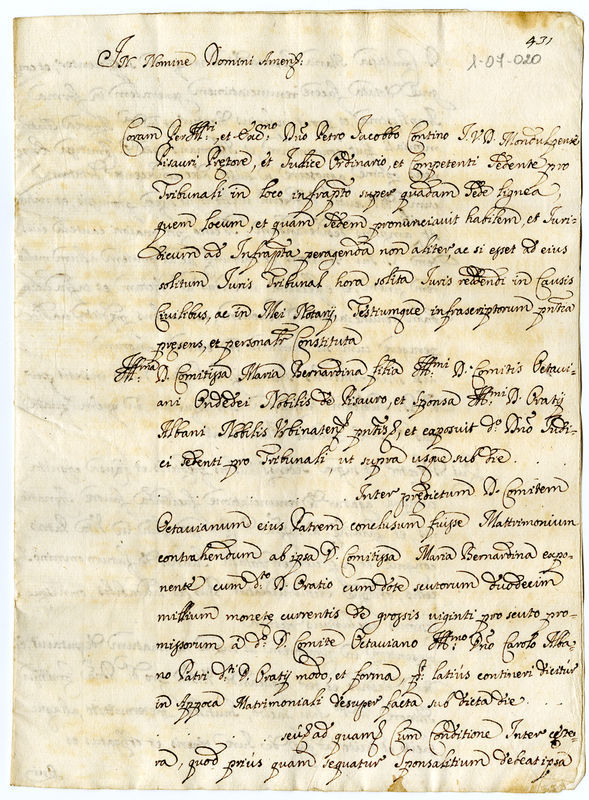 Bozza dell’instrumento di matrimonio fra Ondedei Maria Bernardina e Albani Orazio