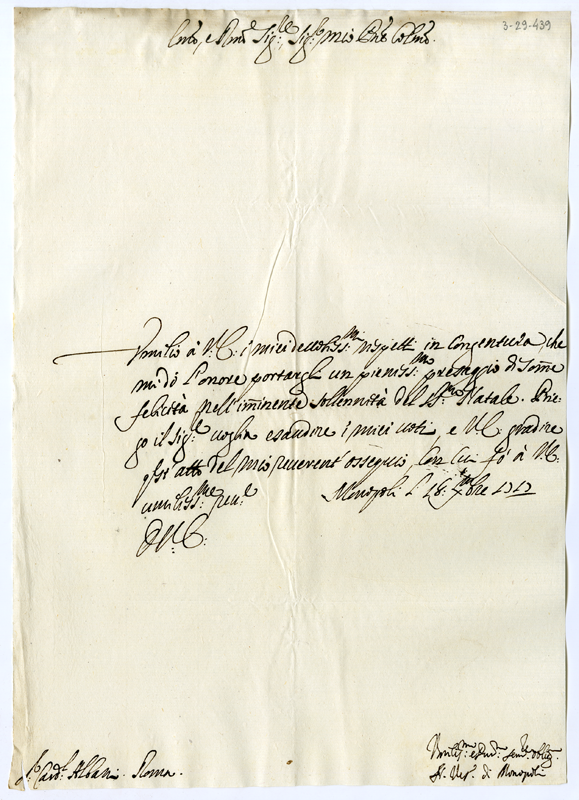 Lettera del vescovo di Monopoli al cardinale Annibale Albani (1717 dicembre 18)