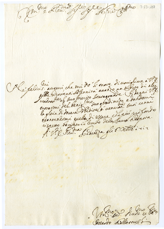 Lettera di Gottardo Pallastrelli al cardinale Annibale Albani (1717 dicembre 6)