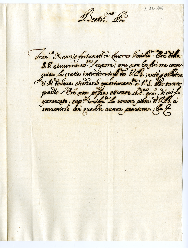 Francesco Xaverio Fortunati chiede al pontefice una pensione