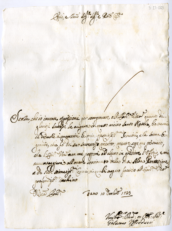 Lettera di Galeotto Uffreducci al cardinale Annibale Albani (1723 dicembre 10)