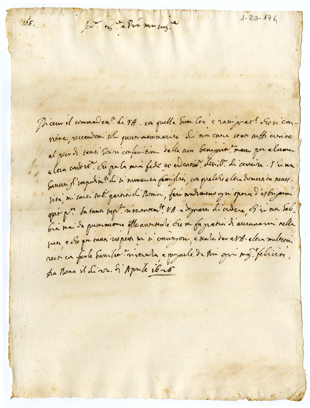 Minuta di lettera di Orazio Albani a Francesco Maria Duca di Urbino (1626 aprile 22)