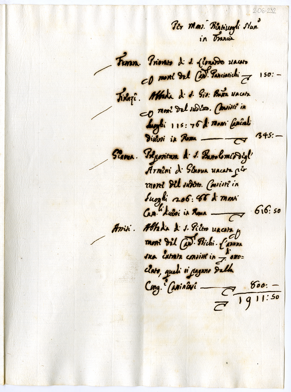 Pensioni per Bentivoglio Nunzio in Francia (1700-1721)
