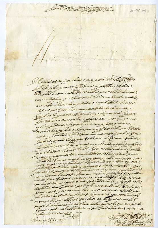 Lettera di Niccolò Gallinari al Cardinale Annibale Albani (1716 gennaio 1)