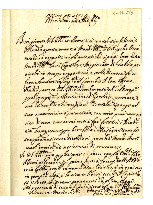 Lettera di Flaminio Catellani a mons. Giovanni Francesco Albani (1678 marzo 12)