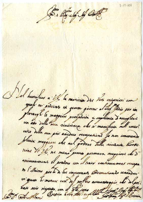 Lettera di Gianfrancesco vescovo di Brescia al cardinale Annibale Albani (1719 dicembre 14)
