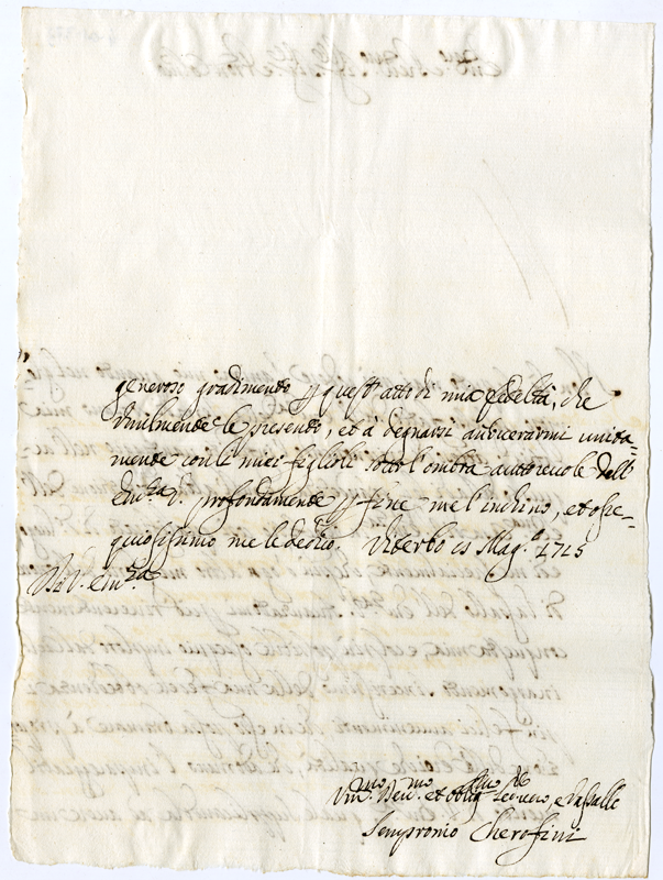 Lettera di Sempronio Cherofini al Cardinale Annibale Albani (1715 maggio 8)
