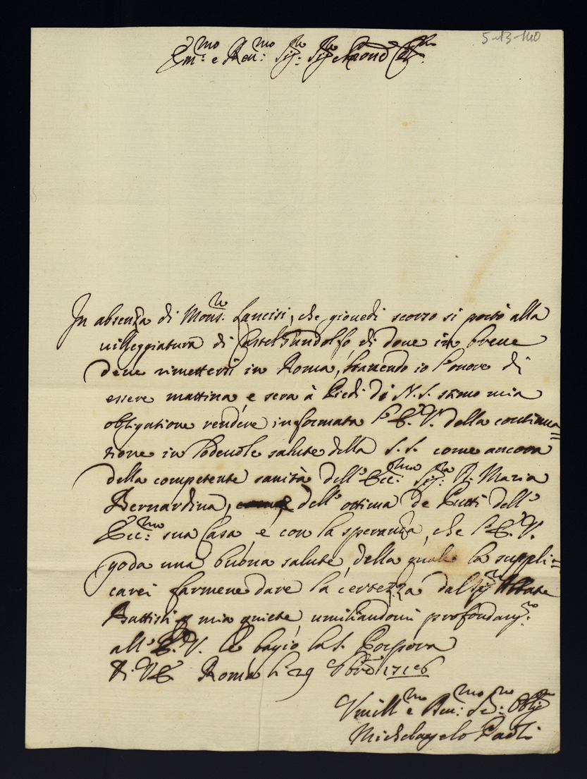 Lettere di confidenza. 1718