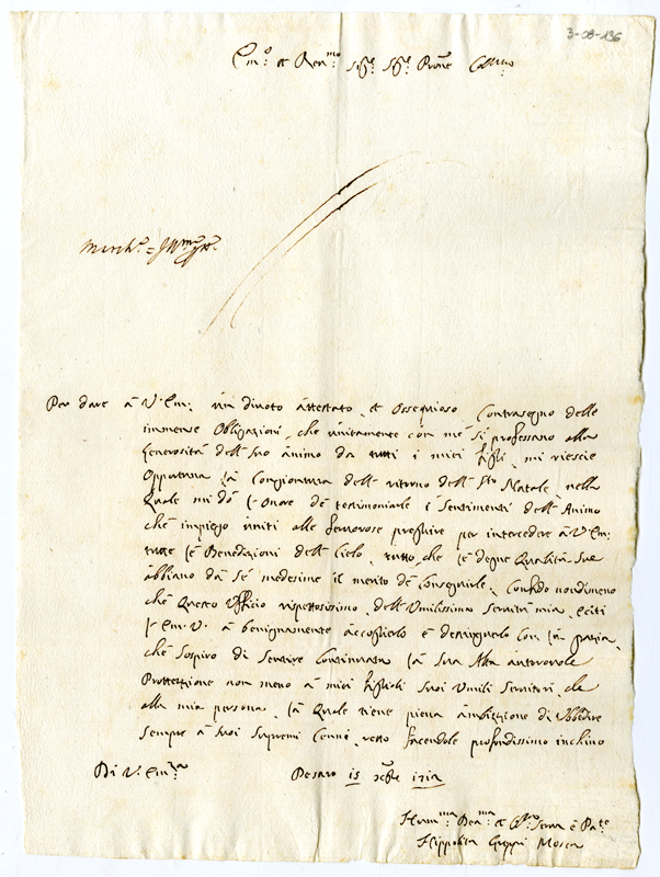 Lettera di Ippolita Greppi Mosca al cardinale Annibale Albani (1712 dicembre 15)