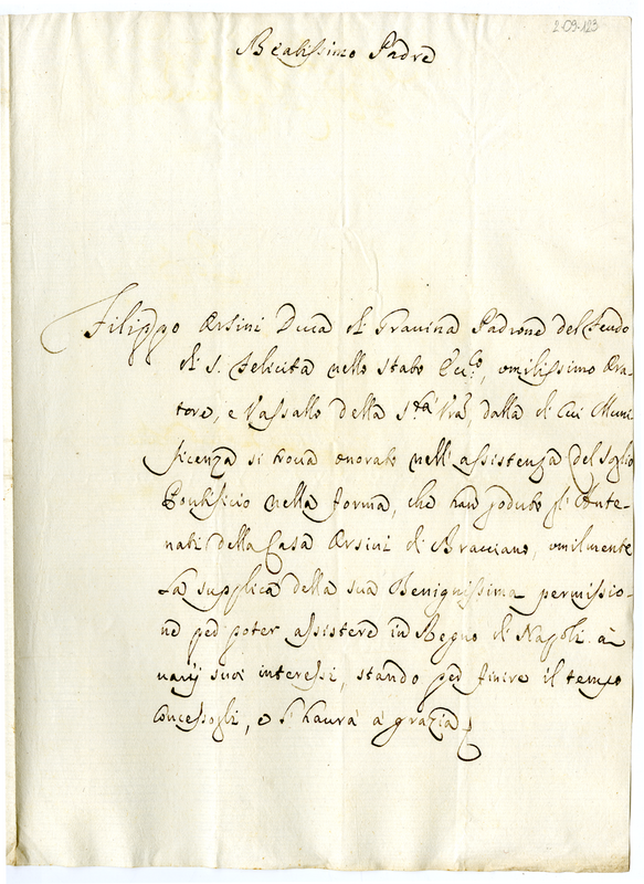 Lettera di Filippo Orsini duca di Gravina a Clemente XI (1700-1721)