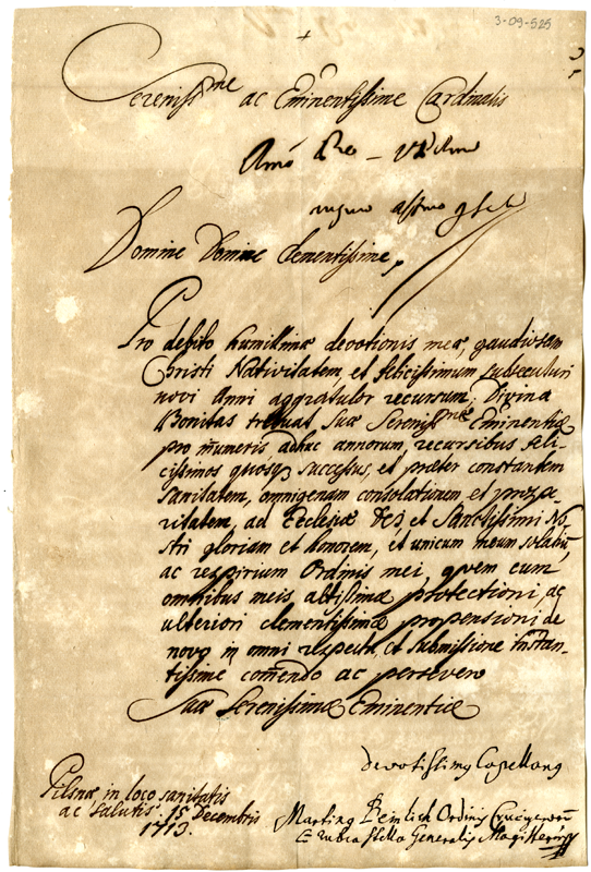 Lettera di Martino Beinlich al cardinale Annibale Albani (1713 dicembre 15)