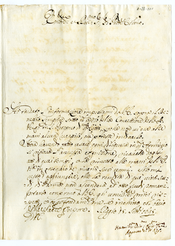 Lettera del Vescovo di Reggio Emilia a un Cardinale (1695 settembre 15)