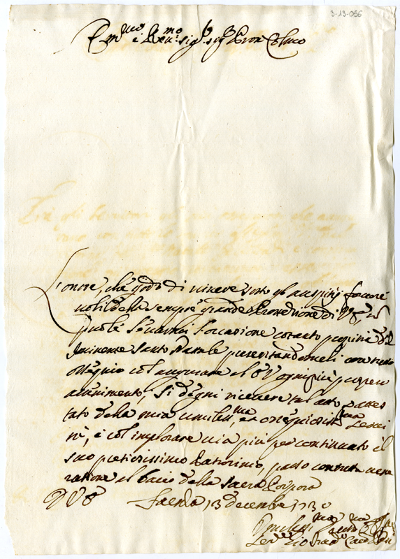 Lettera di Giovanni Francesco Pasi al cardinale Annibale Albani (1730 dicembre 13)