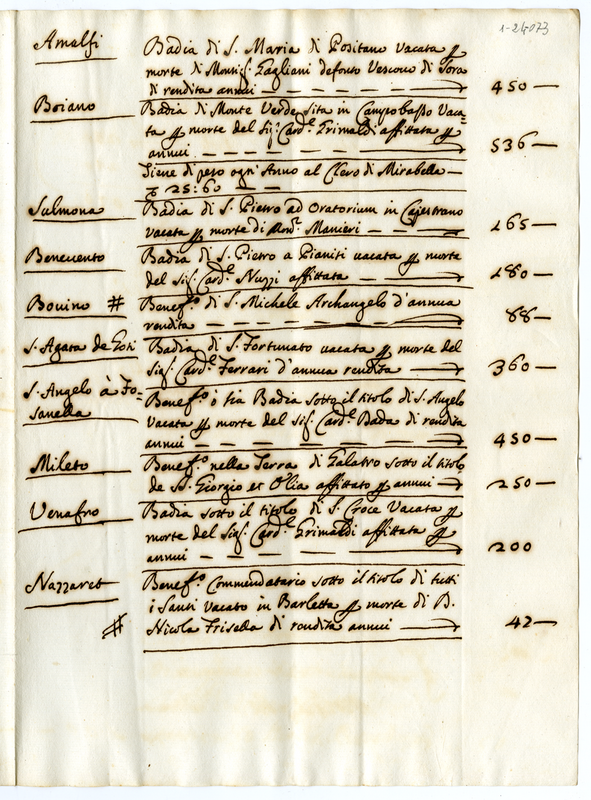 Benefici vacanti di alcune chiese nel Regno di Napoli (1700-1721)