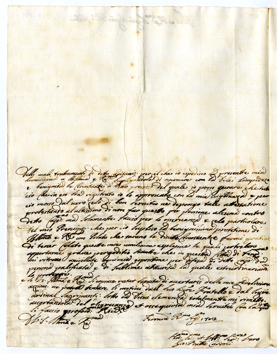 Lettera di Giovanni Battista Cardoli ad un prelato (1702 agosto 1)
