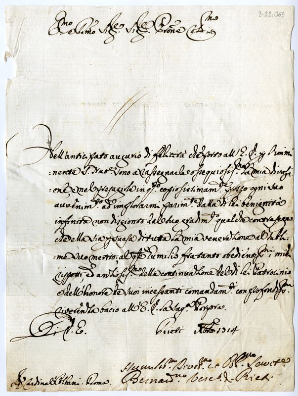 Lettera di Bernardino vescovo di Rieti al cardinale Annibale Albani (1714 dicembre)