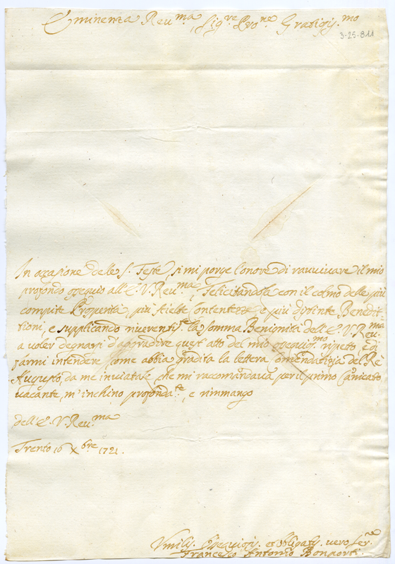 Lettera di Francesco Antonio Bonporti al cardinale Annibale Albani (1721 dicembre 16)