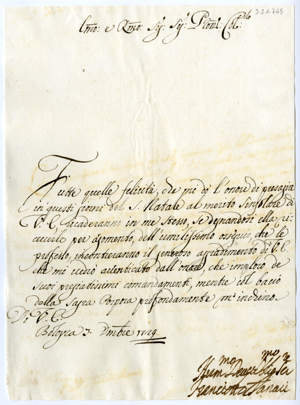Lettera di Franciotto Tanari al cardinale Annibale Albani (1729 dicembre 7)