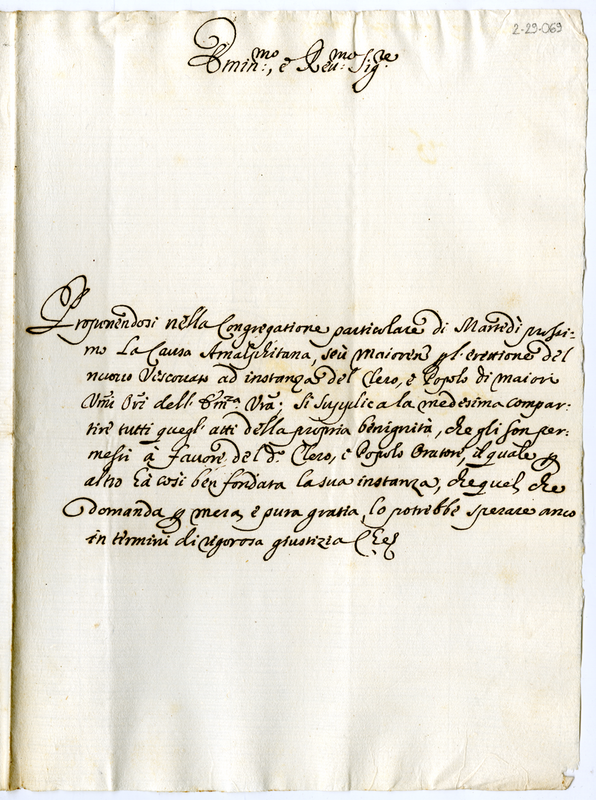 Lettera del clero e popolo di Maiori al cardinale Acciaioli (1700-1719)