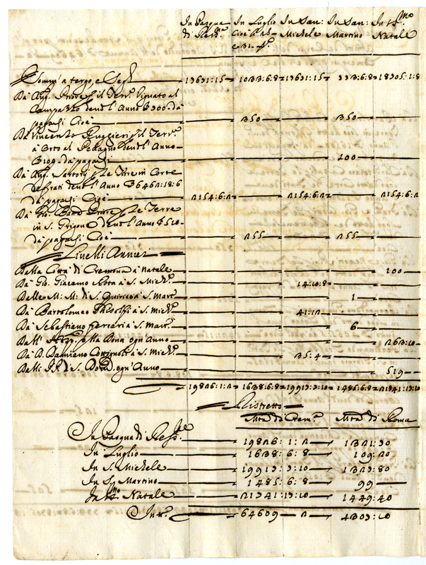 Descrizione delle rendite degli affitti dei beni dell'Abbazia di Sant'Abbondio e dell'Abbazia di Santo Stefano (1700-1721)