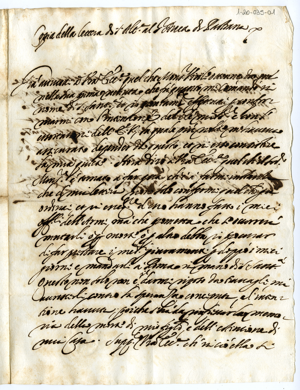Copia della lettera di Sua Altezza al Gran Duca di Pastrana (1624 settembre 17)