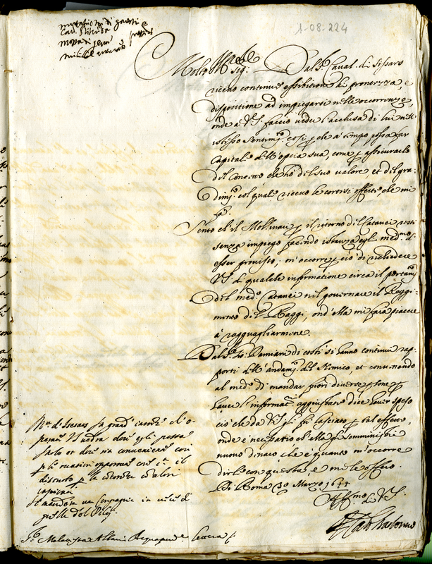 Lettera del cardinale Barberini Francesco senior a Malatesta Albani (1644 marzo 30)