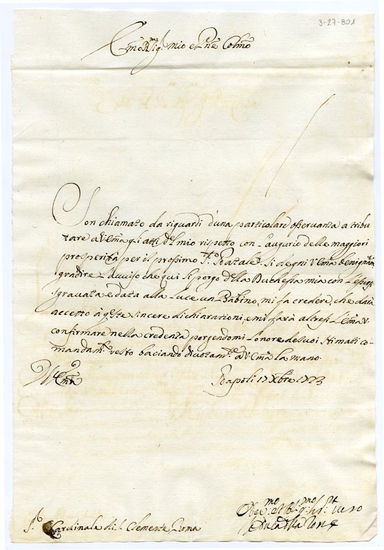 Lettera del duca della Torre al cardinale Annibale Albani (1723 dicembre 17)