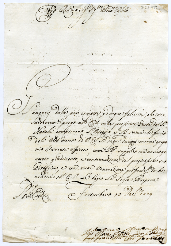 Lettera di fra Francesco Maria Ferretti al cardinale Annibale Albani (1729 dicembre 10)