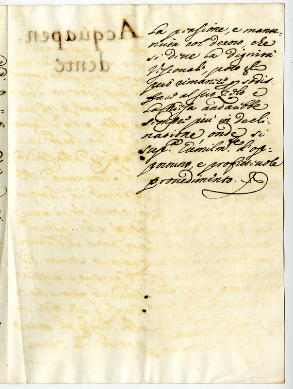 Provvedimenti che si è pensato di adottare nei confronti del vescovo di Acquapendente e della sua richiesta di poter lasciare la diocesi per motivi di salute (1709)