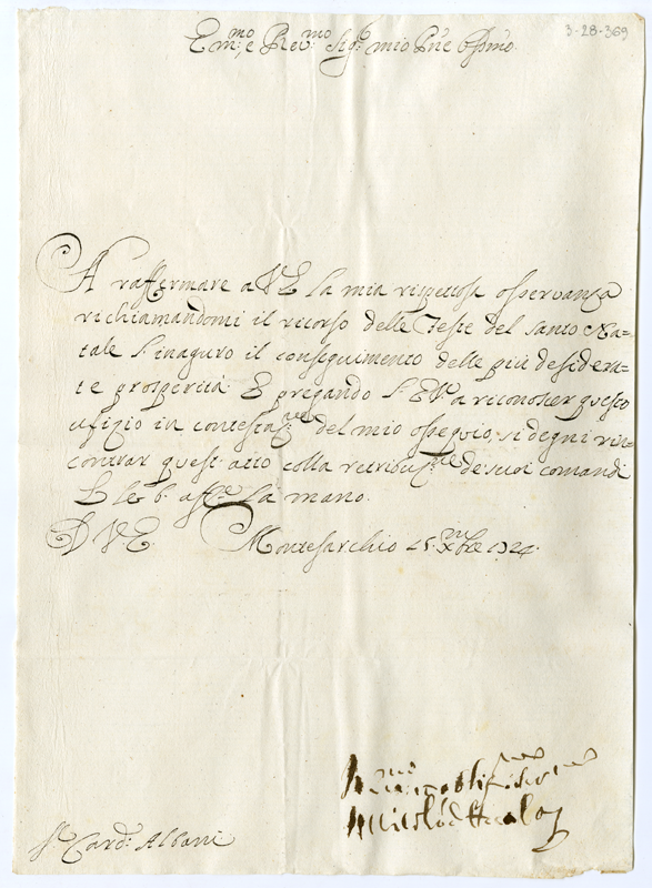 Lettera di Nicolò de Havalos al cardinale Annibale Albani (1724 dicembre 15)
