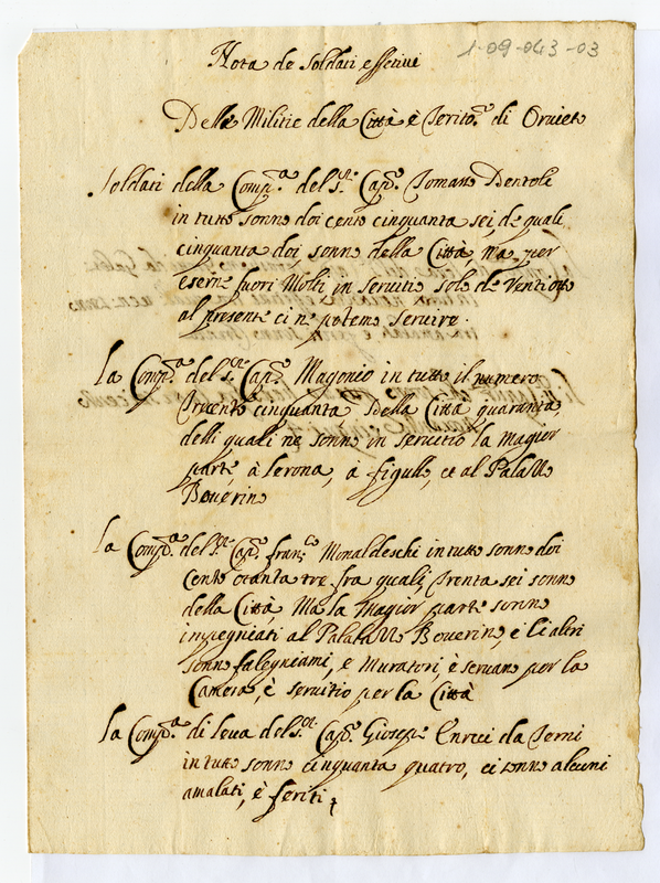 Nota de soldati effettivi Delle militie della Città e territorio di Orvieto