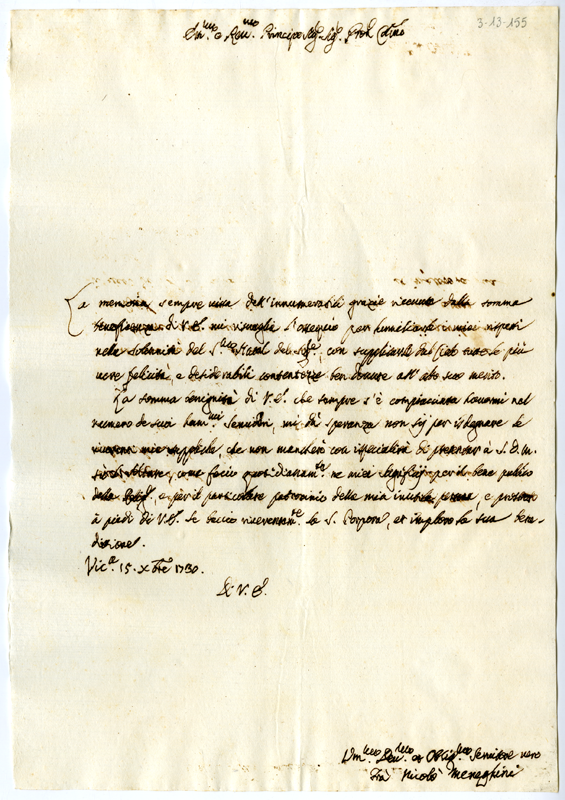 Lettera di frà Nicolò Meneghini al cardinale Annibale Albani (1730 dicembre 15)