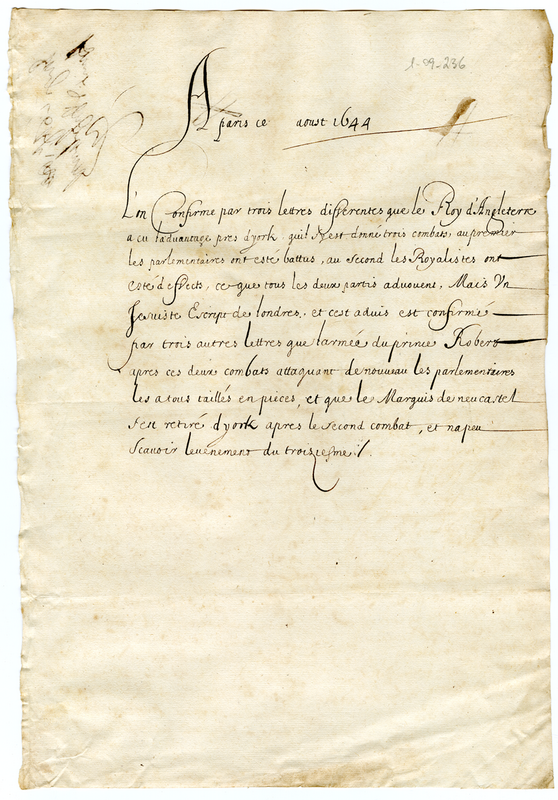 Descrizione sommaria dei tre giorni di guerra fra le truppe realiste del principe Roberto e quelle parlamentari