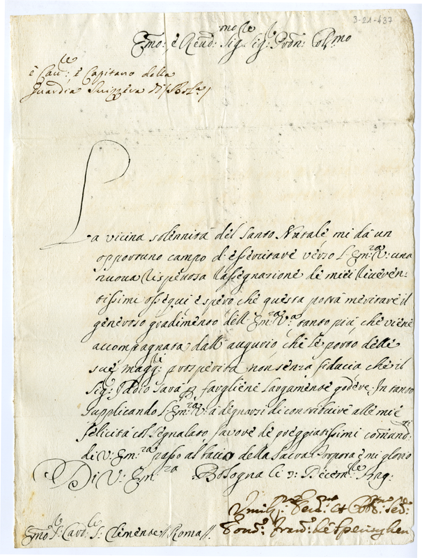 Lettera di Francesco de Speringhen al cardinale Annibale Albani (1729 dicembre 7)