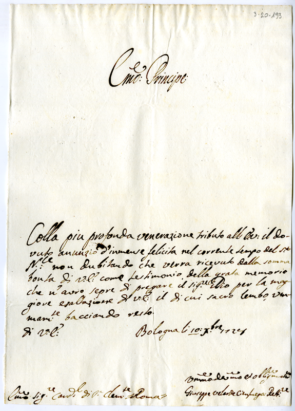 Lettera di Giuseppe Velarde Cimprega al cardinale Annibale Albani (1728 dicembre 10)