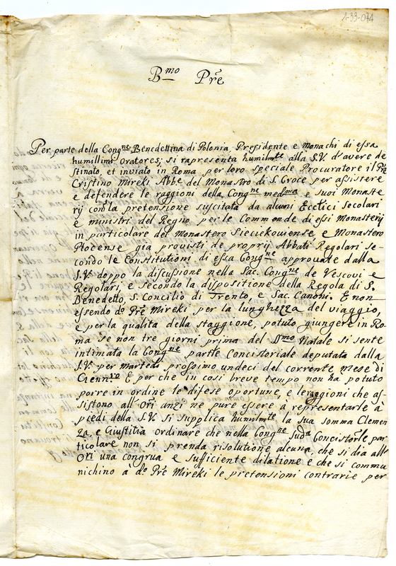 Lettera della congregazione benedettina polacca a papa Clemente XI (1700-1721)