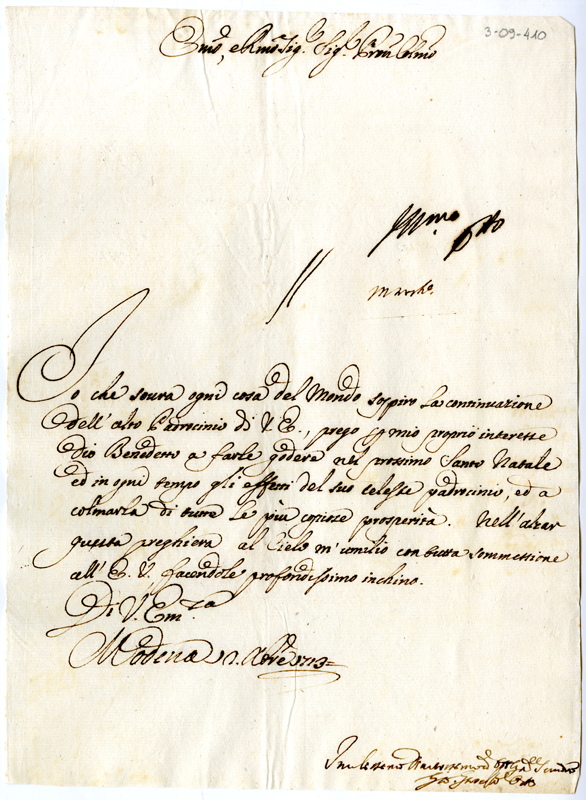 Lettera di Giovanni Gioseffo Orsi al cardinale Annibale Albani (1713 dicembre 12)