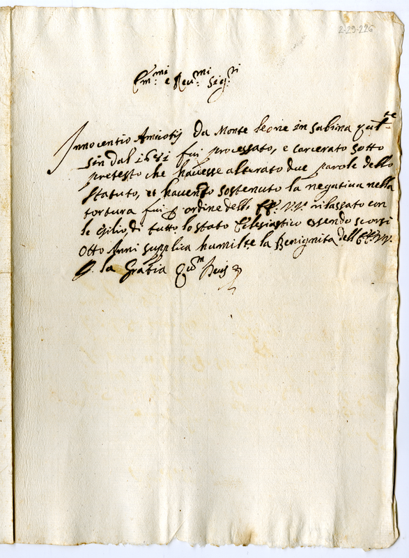 Lettera di Innocenzo Amicoti ai cardinali della Sacra Consulta (1700-1721)