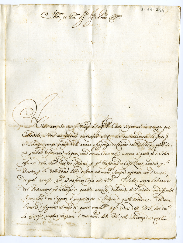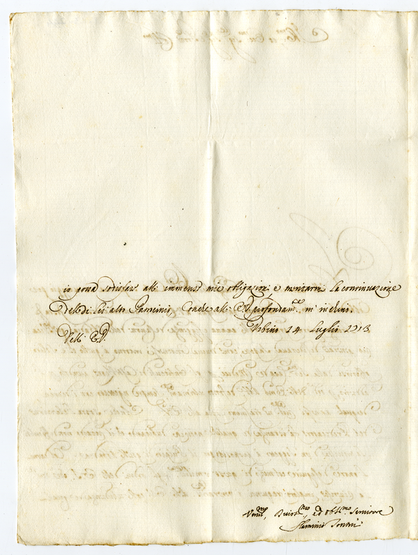 Lettera di Flaminio Tontini ad un illustrissimo et eccellentissimo signore (1713 luglio 14)