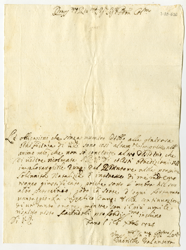 Lettera di Gabriele Galantara al cardinale Annibale Albani (1724 dicembre 18)