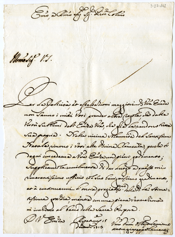 Lettera di Anton Giuseppe Laurentii al cardinale Annibale Albani (1723 dicembre 15)