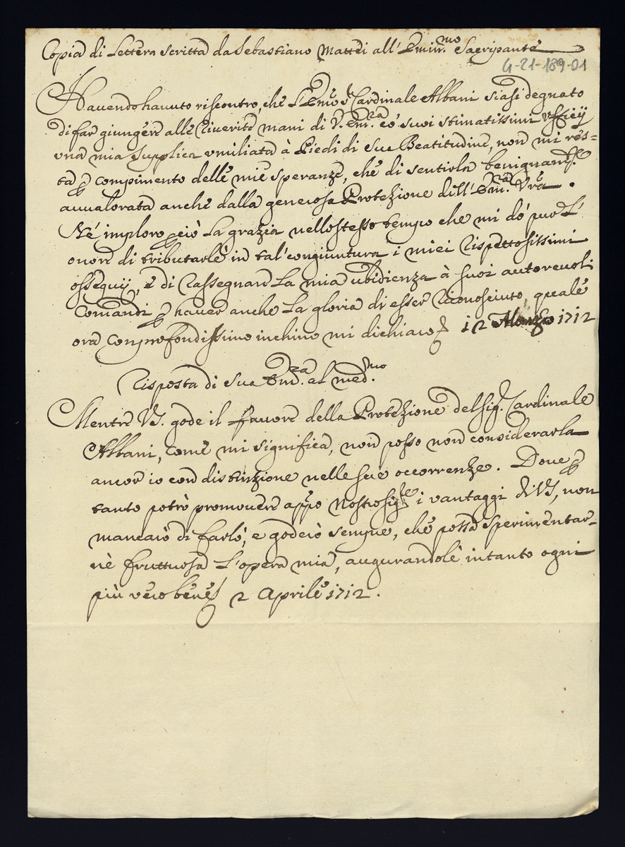 1712. Lettere diverse. Semestre primo