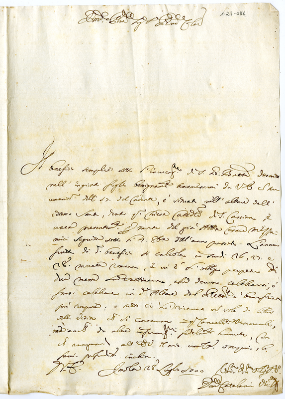 Lettera di Domenico Catalani ad un Cardinale (1700 luglio 28)