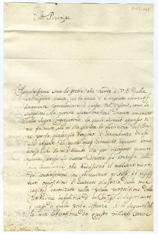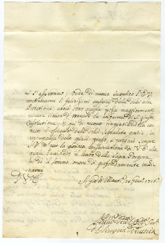 Lettera di Donna Olimpia d'Austria al cardinale Annibale Albani (1716 gennaio 24)