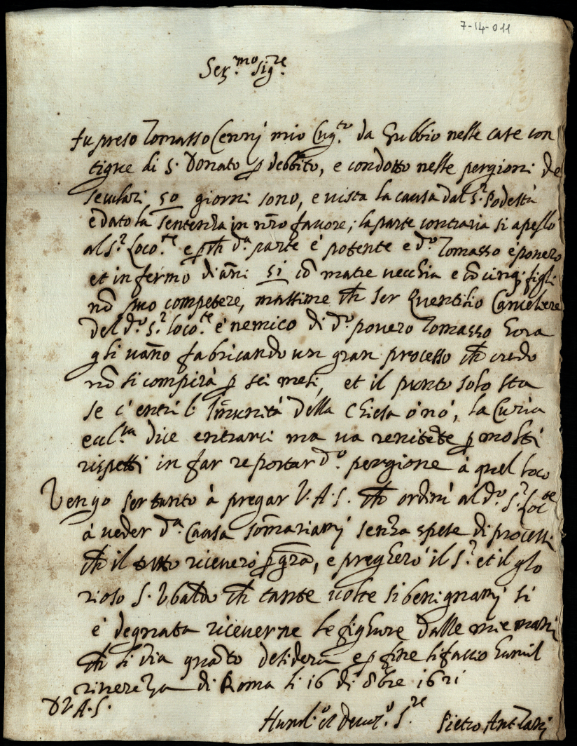 Lettere, memoriali al Serenissimo Principe d'Urbino appartenenti alla carica di segretario di Giustizia